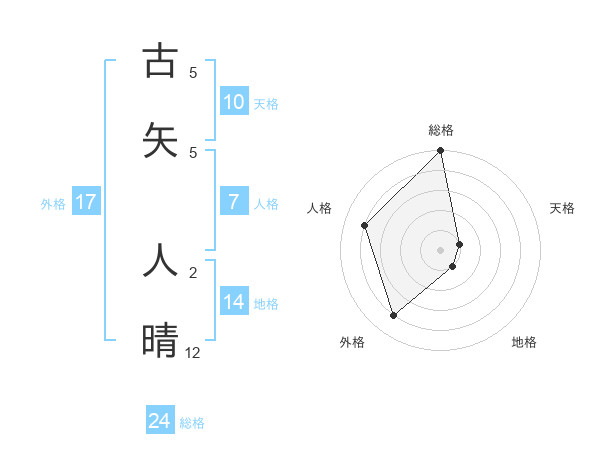 古矢 人晴さんの総格は24画の5点!
