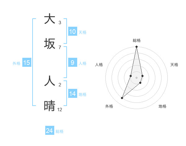 大坂 人晴さんを姓名の画数から五運を鑑定