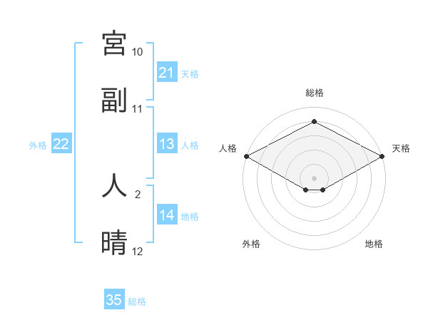 宮副 人晴さんを姓名の画数から五運を鑑定