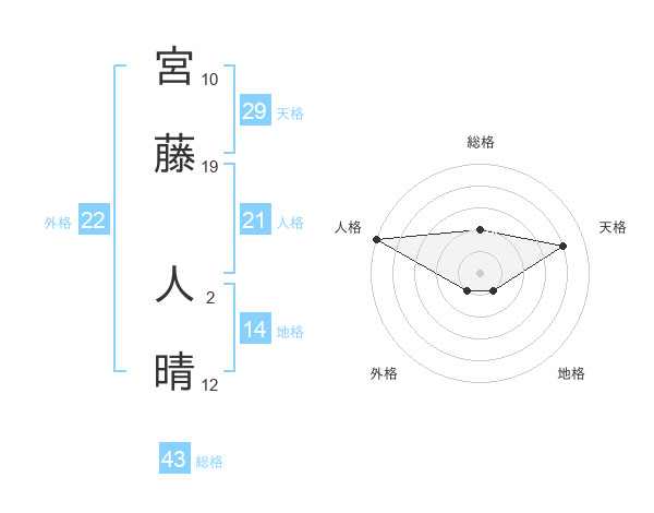 宮藤 人晴さんを姓名の画数から五運を鑑定