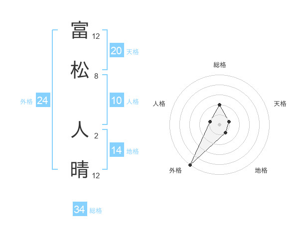富松 人晴さんの総格は34画の2点!
