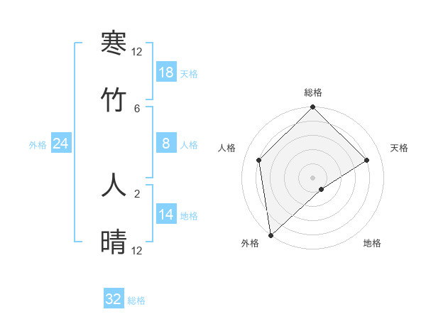 寒竹 人晴さんの総格は32画の5点!