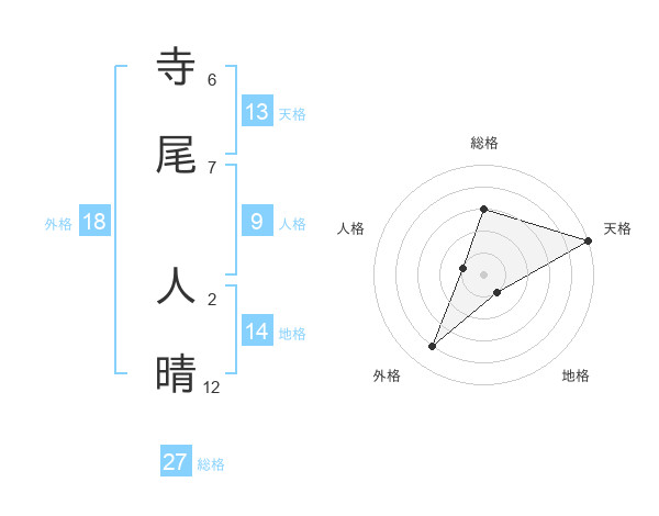 寺尾 人晴さんを姓名の画数から五運を鑑定