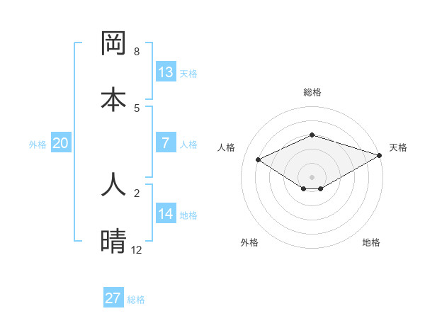 岡本 人晴さんを姓名の画数から五運を鑑定