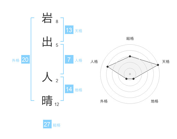 岩出 人晴さんを姓名の画数から五運を鑑定