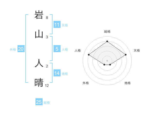 岩山 人晴さんの総格は25画の4点!