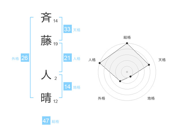 斉藤 人晴さんを姓名の画数から五運を鑑定