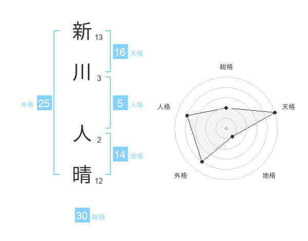 新川 人晴さんの天格は16画の5点!