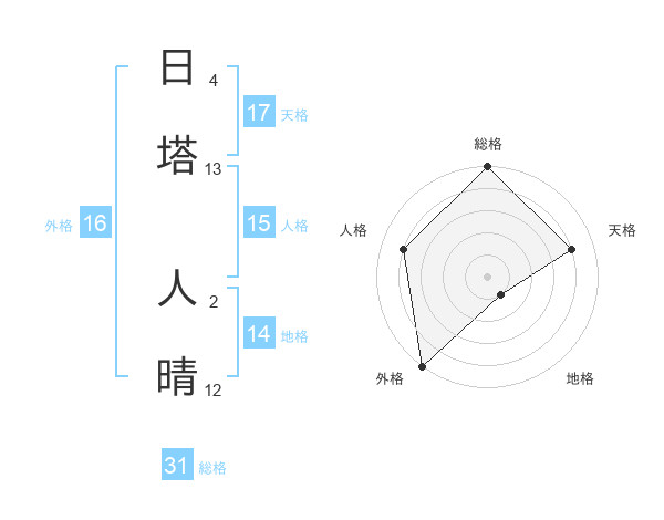 日塔 人晴さんを姓名の画数から五運を鑑定
