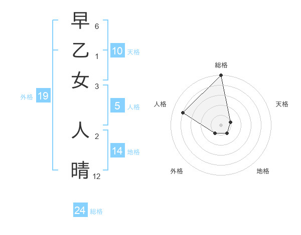 早乙女 人晴さんを姓名の画数から五運を鑑定