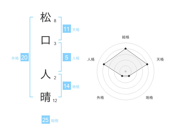 松口 人晴さんの総格は25画の4点!