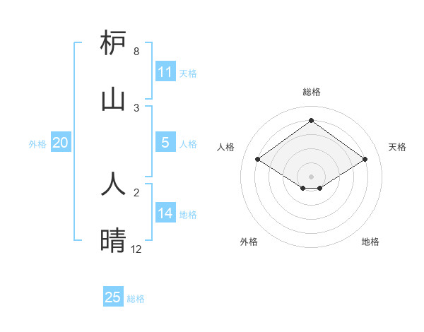 枦山 人晴さんの総格は25画の4点!