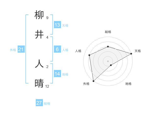 柳井 人晴さんを姓名の画数から五運を鑑定