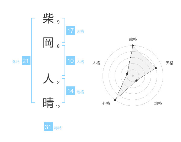 柴岡 人晴さんの総格は31画の5点!