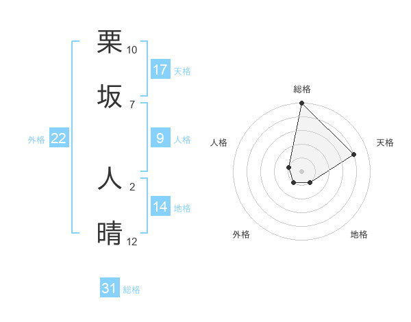 栗坂 人晴さんの総格は31画の5点!