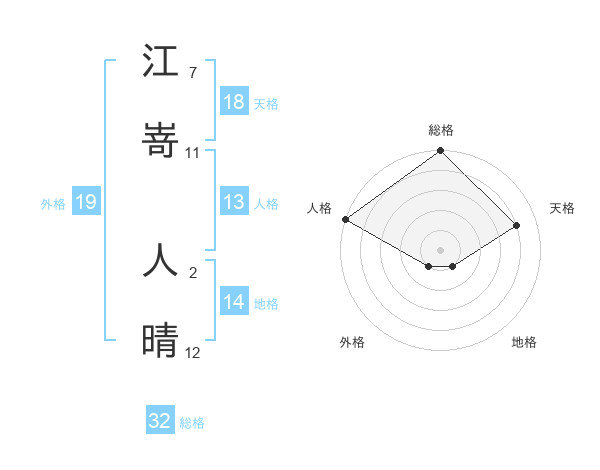 江嵜 人晴さんを姓名の画数から五運を鑑定