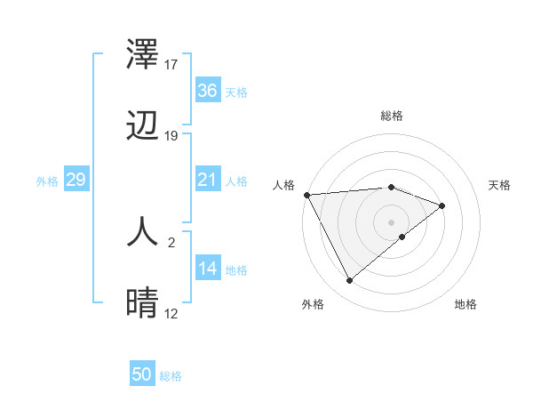 澤辺 人晴さんの総格は50画の2点!