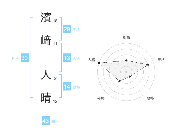 濱﨑 人晴さんを姓名の画数から五運を鑑定