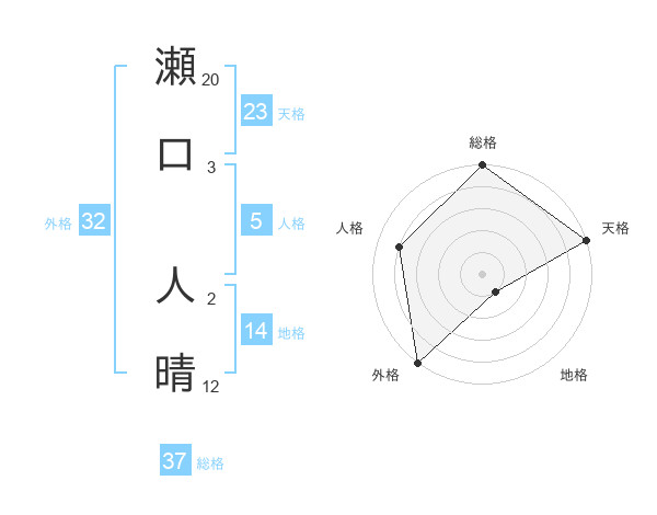 瀬口 人晴さんの総格は37画の5点!