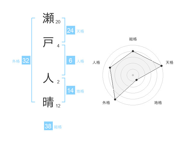 瀬戸 人晴さんを姓名の画数から五運を鑑定