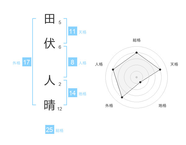 田伏 人晴さんの総格は25画の4点!