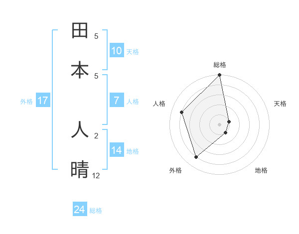 田本 人晴さんの総格は24画の5点!