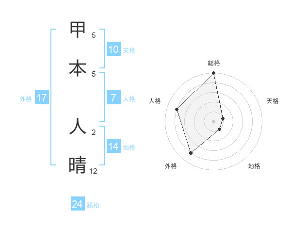 甲本 人晴さんの総格は24画の5点!