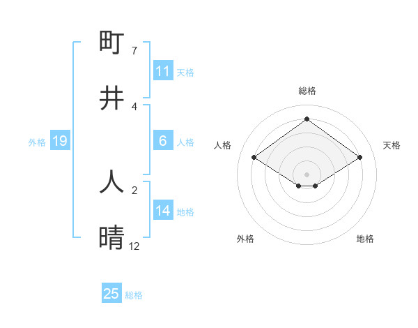 町井 人晴さんの総格は25画の4点!