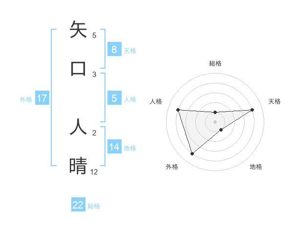 矢口 人晴さんの総格は22画の1点!