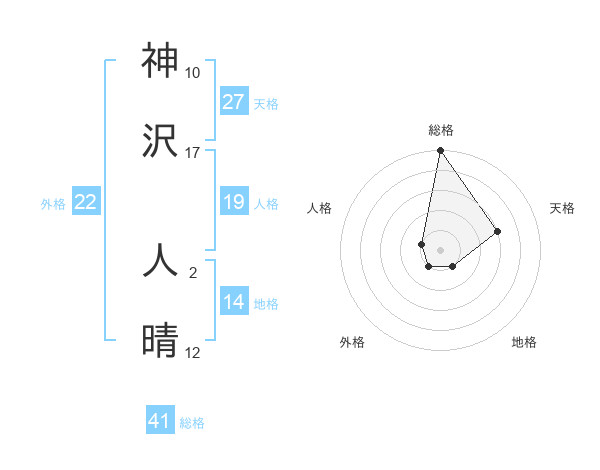 神沢 人晴さんの総格は41画の5点!