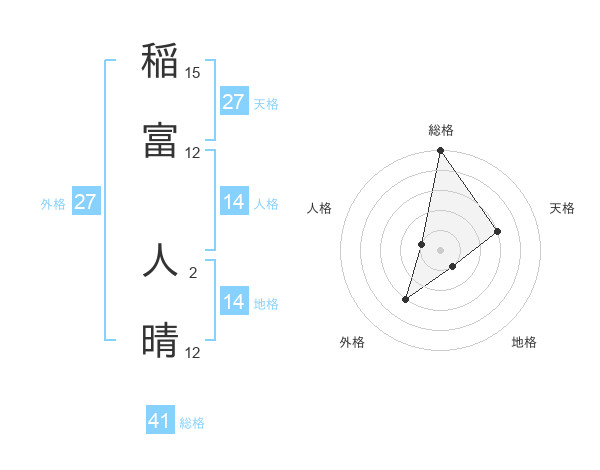 稲富 人晴さんを姓名の画数から五運を鑑定