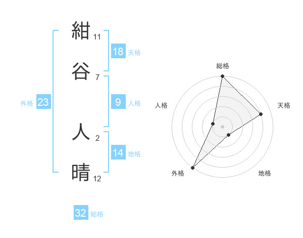 紺谷 人晴さんの総格は32画の5点!