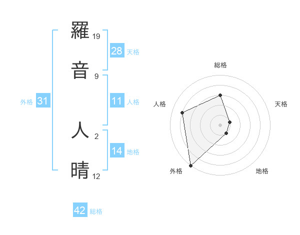 羅音 人晴さんの外格は31画の5点!