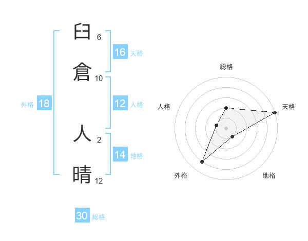 臼倉 人晴さんの天格は16画の5点!