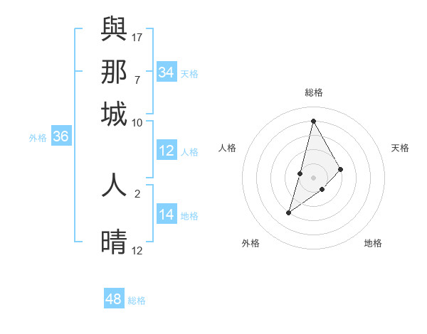 與那城 人晴さんの総格は48画の4点!