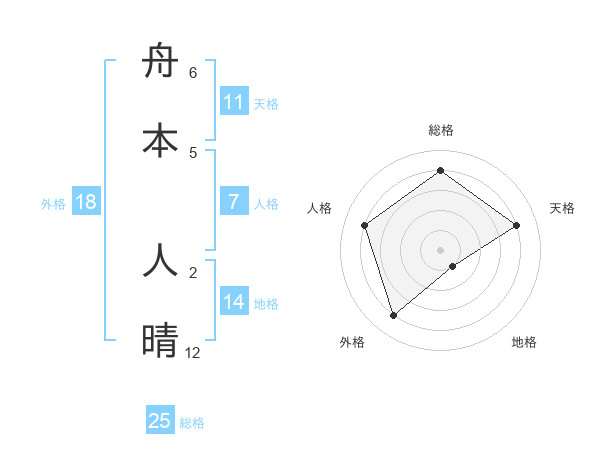 舟本 人晴さんの総格は25画の4点!
