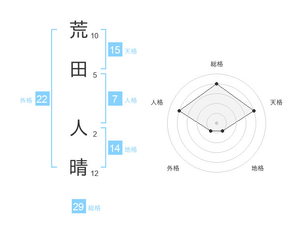 荒田 人晴さんの総格は29画の4点!