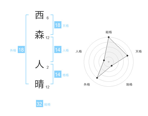 西森 人晴さんの天格は18画の4点!