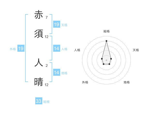 赤須 人晴さんを姓名の画数から五運を鑑定