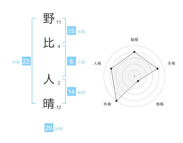 野比 人晴さんの総格は29画の4点!