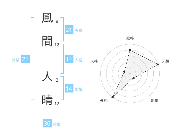 風間 人晴さんの外格は21画の5点!