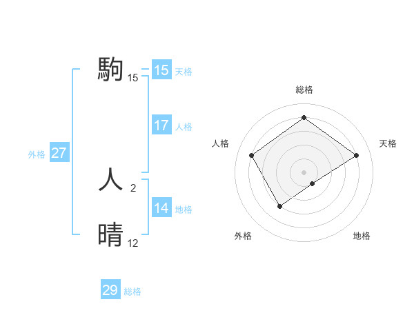 駒 人晴さんの総格は29画の4点!
