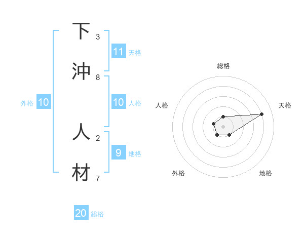 下沖 人材さんの天格は11画の4点!