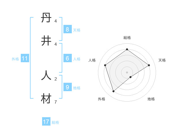 丹井 人材さんの総格は17画の4点!