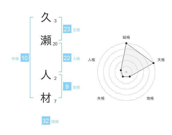 久瀬 人材さんの総格は32画の5点!