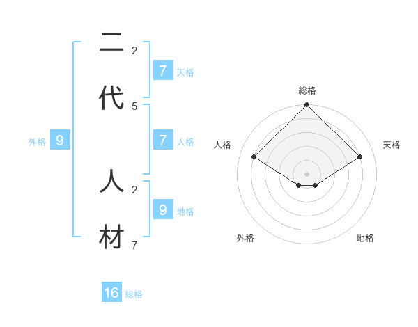 二代 人材さんの総格は16画の5点!