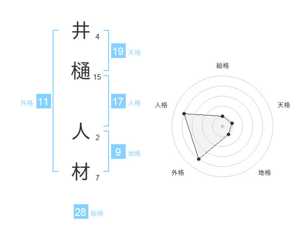 井樋 人材さんの総格は28画の1点!