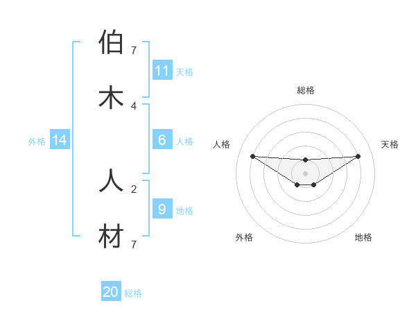 伯木 人材さんの総格は20画の1点!