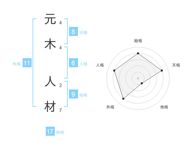 元木 人材さんの総格は17画の4点!