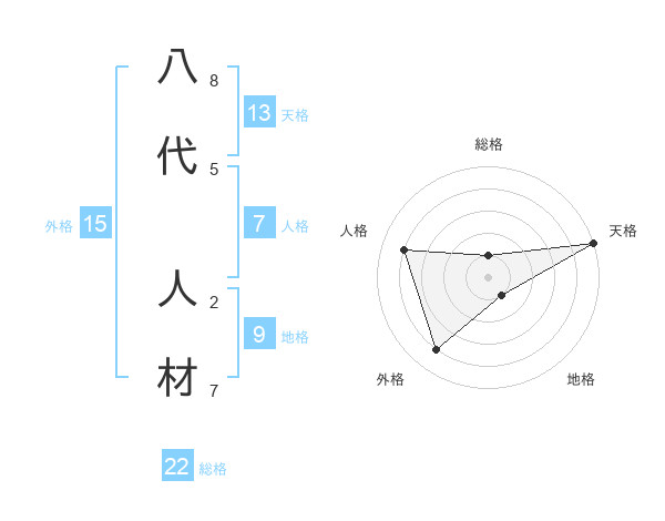 八代 人材さんの総格は22画の1点!